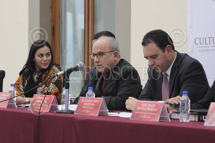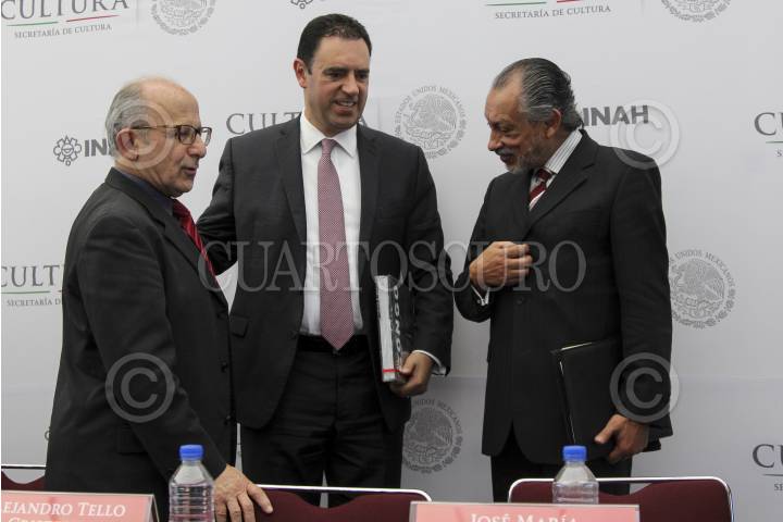 CIUDAD DE MÉXICO, 06DICIEMBRE2016.- Diego Prieto Hernández, secretario técnico y encargado del Despacho de dirección general del Instituto Nacional de Antropología e Historia (INAH); Alejandro Tello Cristerna, gobernador constitucional de Zacatecas, y José María Muñoz, coordinador nacional de centros del INAH, durante la conferencia de prensa, presentada en el Museo Nacional de Historia, para anunciar las actividades y festejos por los 100 años de existencia del Museo de Guadalupe Zacatecas. FOTO: GALO CAÑAS /CUARTOSCURO.COM