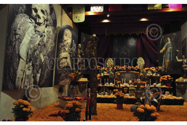 MÉXICO, D.F., 19OCTUBRE2012.- El Museo del Carmen dedica su tradicional altar de Muertos a los 12 cuerpos momificados de más de 300 años de antigüedad que se conservan en el recinto. Este Museo que se ecuentra en Av. Revolución # 4 y 6 esquina con el callejón del Monasterio, San Ángel. Delegación Álvaro Obregón. tiene sus puertas abiertas con horarios propios de un Museo. FOTO: INAH /M. TAPIA /CUARTOSCURO.COM