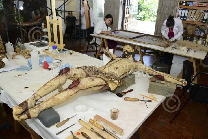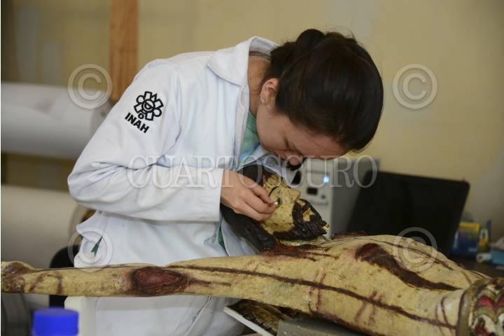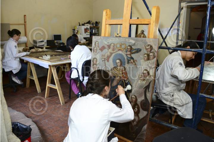 MÉXICO, D.F., 26AGOSTO2013.- Especialistas del Instituto Nacional de Antropología e Historia, realizaron labores de restauración de pinturas y piezas religiosas en el Museo del Carmen. FOTO: INAH /CUARTOSCURO.COM
