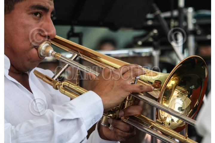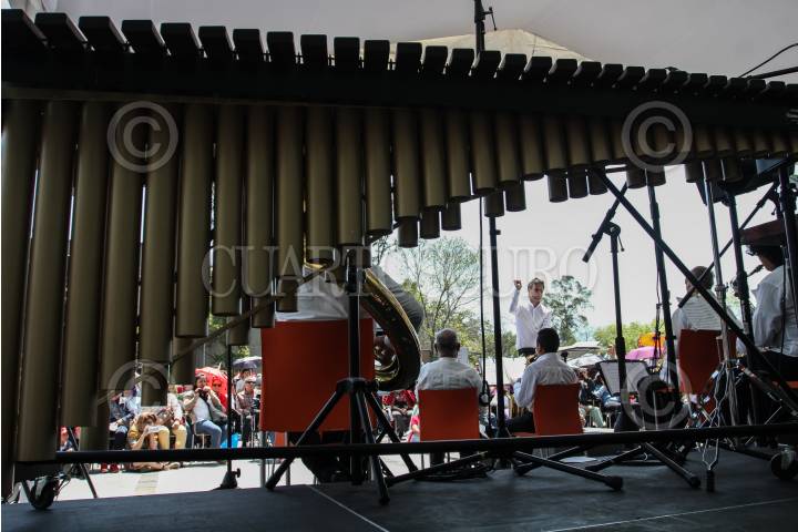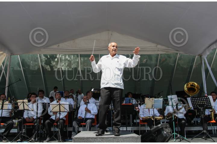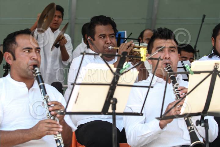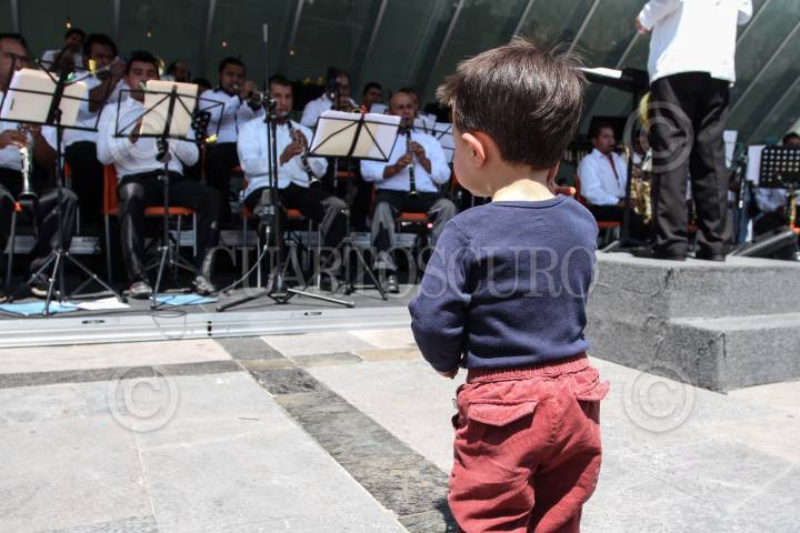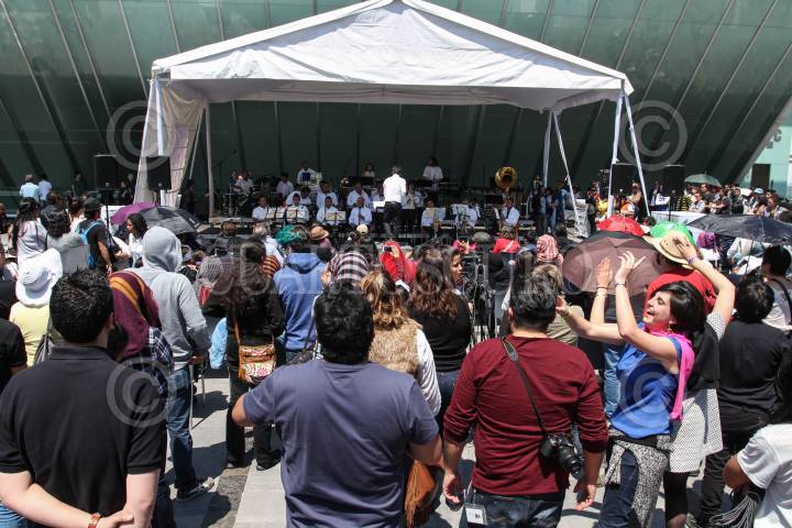 CIUDAD DE MÉXICO, 12MARZO2016.- Ante decenas de espectadores la Banda Mixe de Oaxaca ofreció un concierto "Acid Brass" en la explanada del Museo Universitario Arte Contemporáneo (MUAC) con motivo de la exposición del británico Jeremy Doller que se exhibe en el recinto cultural. Mañana se presentarán nuevamente y de forma gratuita en La Casa del Lago. FOTO: MARÍA JOSÉ MARTÍNEZ /CUARTOSCURO.COM