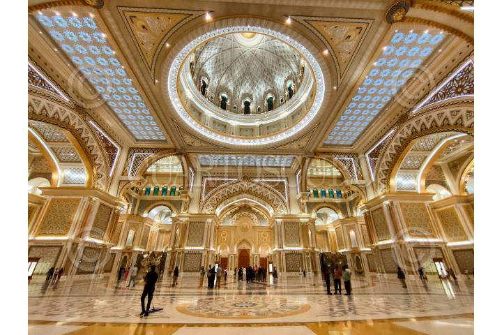 ABU DHABI, EMIRATOS ÁRABES UNIDOS, 16NOVIEMBRE2023.- Qasr Al Watan es el palacio presidencial de los Emiratos Árabes Unidos, situado en la capital, Abu Dhabi. Significa literalmente “el Palacio de la Nación” y se ha convertido en una de las principales atracciones turísticas de la ciudad. El impresionante palacio es utilizado únicamente para reuniones y recepciones de gobierno. En el se albergan regalos diplomáticos, esculturas y una biblioteca. Una de las características de está construcción es su simetría, casi como un espejo, además de los acabados y detalles con los que cuenta. FOTO: MOISÉS PABLO/CUARTOSCURO.COM