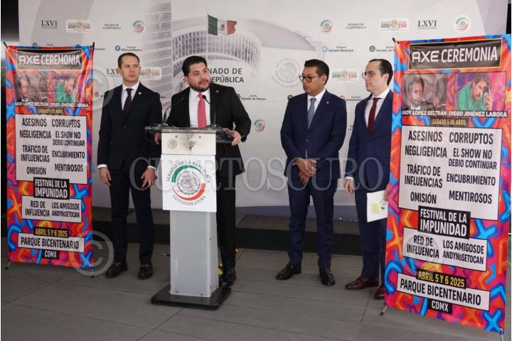 CIUDAD DE MÉXICO, 08ABRIL2025.- Néstor Camarillo, senador de la bancada del PRI, encabezó una conferencia de prensa en el Patito del Federalismo en la que mostró su inconformidad sobre el caso de los fotógrafos Berenice Giles y Miguel Rojas Hernández, quienes murieron el pasado 5 de abril a causa de que una grúa de metal les cayó encima mientras estaban trabajando en el Festival Axel Ceremonia en el Parque Bicentenario. FOTO: GRACIELA LÓPEZ/CUARTOSCURO.COM