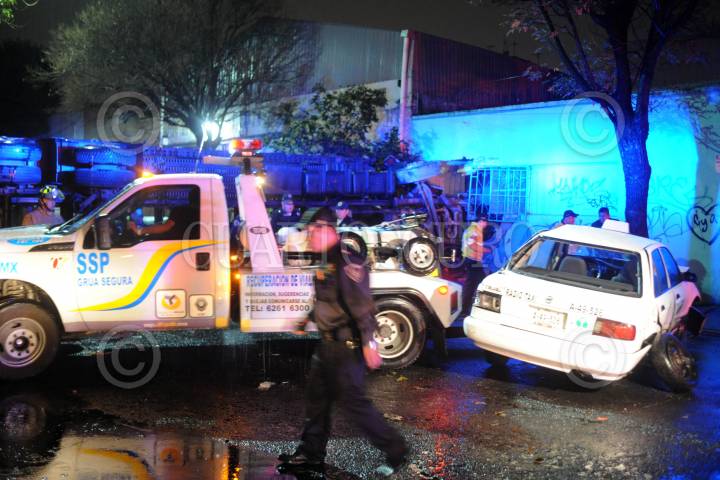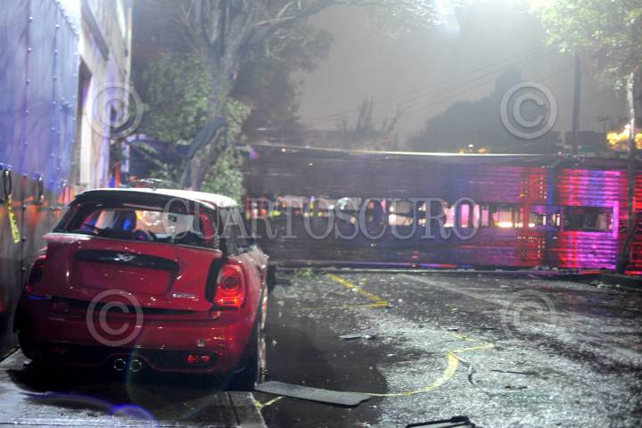 MÉXICO D.F., 03OCTUBRE2014.- Un tráiler tipo nodriza volcó al perder el control de la unidad cuando circulaba en Av. Aquiles Serdán de la colonia San Francisco Tepetlaya en Azcapotzalco. Dos vehículos mini-cooper que trasladaba resultaron seriamente dañados así como una casa con la que impacto la pesada unidad. FOTO: LUIS CARBAYO /CUARTOSCURO.COM
