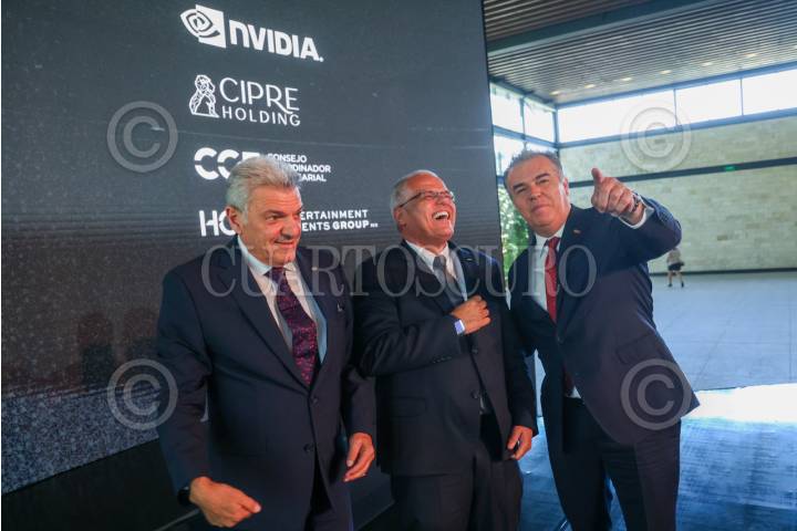 CIUDAD DE MÉXICO, 29JULIO2025.- Max El-Mann, presidente de atracción de inversión del Consejo Coordinador Empresarial; Marcio Aguiar, director de Nvidia para América Latina, y Francisco Cervantes Díaz; presidente del Consejo Coordinador Empresarial (CCE); al finalizar el anunció de la primera edición del evento MÉXICO IA + Inversión Acelerada 2025,, el cual se realizará el 12 y 13 de noviembre en Expo Santa Fe. Este encuentro es para alentar la consolidación de la plataforma nacional que articula inteligencia artificial, inversión estructural y capacidades institucionales con visión de soberanía y escala regional. La cita se llevó a cabo en el Jardín Santa Fe. FOTO: MOISÉS PABLO/CUARTOSCURO.COM