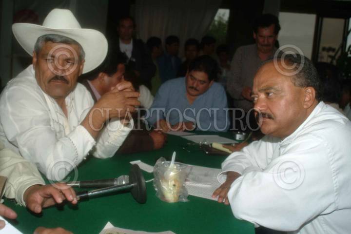 Nabor Ojeda Delgado, líder de la CNC recibe a miembros de este congreso en las instalaciones del PRI tras su toma pacifica. FOTO: Nelly Salas/CUARTOSCURO.COM