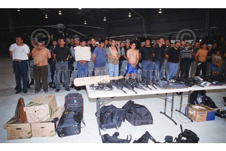 México D.F., a 18 de Mayo de 2007. (ARCHIVO) De acuerdo con indagatorias sustentadas por la Subprocuraduría de Investigación Especializada en Delincuencia Organizada (SIEDO), los 18 inculpados fueron detenidos en abril, en tres cateos efectuados en Ciudad del Carmen, Campeche.En esas acciones también se aseguraron 38 armas de fuego; dos mil 175 cartuchos de diversos calibres; 113 cargadores para armas de uso exclusivo de las fuerzas armadas; 40 chalecos tácticos; una granada de mano y 30 insignias de la Agencia Federal de Investigación (AFI).Los procesados se encuentran internos en el Centro Federal de Readaptación Social número 1 "El Altiplano", en Almoloya de Juárez, estado de México. FOTO: Especial/CUARTOSCURO.COM