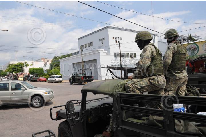 CULIACAN, SINALOA, 03AGOSTO2010.- Fuertemente custodiado por elementos del Ejercito Nacional se llevo a cabo el sepelio de Ignacio “Nacho Coronel” en un cortejo fúnebre que se llevo desde la Funeraria Moreh, ubicada en Boulevard Zapata, hasta el Panteón Jardines del Humaya, donde finalmente fueron sepultados los restos de “Nacho Coronel” y su sobrino “El Gallo” que murió en un enfrentamiento posterior a la muerte de Ignacio Coronel en la ciudad de Guadalajara. En la entrada del Panteón fueron recibidos al son de una banda Sinaloense y acompañado hasta la capilla, donde finalmente fueron sepultados. FOTO: LEO ESPINOZA/EL DEBATE DE CULIACAN/CUARTOSCURO.COM