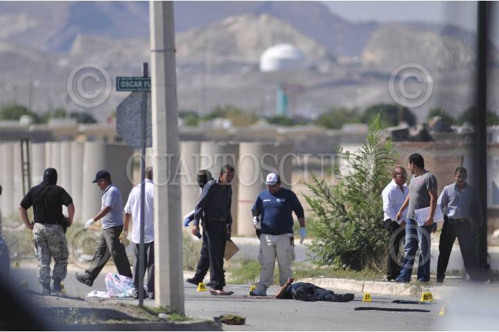 CIUDAD JUAREZ, CHIHUAHUA, 01SEPTIEMBRE2011.- Mario Martin Rodela Portillo, subcomandante de la Policía Municipal fue asesinado esta tarde sobre el bulevar Oscar Flores, después de que fuera bajado de su vehículo particular por un grupo de sujetos. En el lugar fueron localizados varios casquillos percutidos de ‘cuerno de chivo’, después del ataque se generó una ‘fuerte’ movilización por parte de agentes de la Secretaría de Seguridad Pública Municipal para dar con los responsables del atentado. FOTO: NACHO RUIZ/CUARTOSCURO.COM