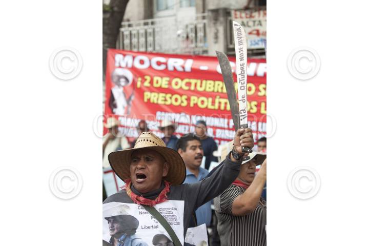 MÉXICO, D.F., 12OCTUBRE2011.- Nacho del Valle, integrantes de la Organización de Pueblos por la Defensa de la Tierra, junto con otras organizaciones sociales marcharon del Ángel de la Independencia a la Secretaría de Gobernación en lo que denominaron Campaña Nacional por la Libertad. FOTO: MOISÉS PABLO/CUARTOSCURO.COM