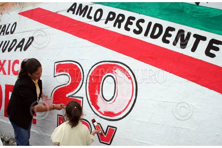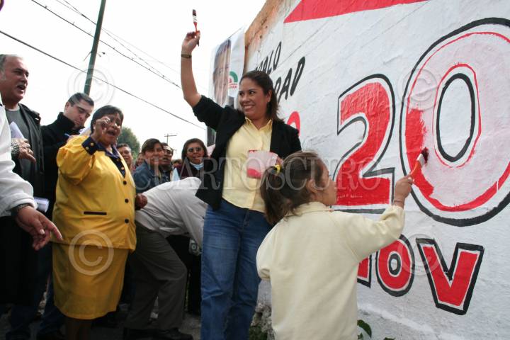 MÉXICO, D.F. 18NOVIEMBRE2006.- La diputada local perredista Nacy Cárdenas presidió el consejo popular xochimilca hacia la toma de protesta de Andrés Manuel López Obrador el día 20 d Noviembre. Al término de dicho evento se organizó una pinta simbólica de paredes en apoyo a AMLO. FOTO: PAOLA HIDALGO/CUARTOSCURO.COM