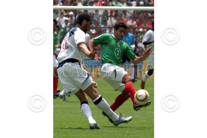 MEXICO, D.F. 27MARZO2005.- Oguchialu Onyewu, de la selección estadounidense y Antonio Naelson de la mexicana se disputan el balón durante el partido de eliminatoria de la CONCACAF, en el Estadio Azteca. FOTO: Sandra Perdomo / CUARTOSCURO.COM