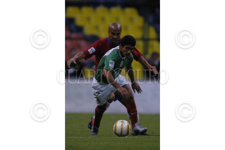MEXICO D.F.17AGOSTO2005.- Antonio Naelson jugador de la selección mexicana de futbol disputa un balón con el jugador de la selección de Costa Rica en el partido de eliminatoria de la CONCACAF rumbo al mundial de Alemania 2006 donde el marcador al medio tiempo es de empate a cero goles. FOTO: Iván Stephens/CUARTOSCURO.COM