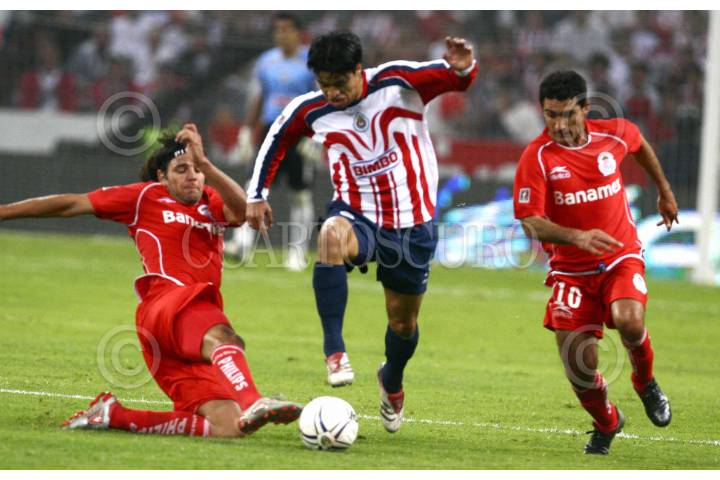 GUADALAJARA, JALISCO, 07DICIEMBRE2006.- En un partido muy cerrado las Chivas Guadalajara y los Diablos del Toluca empatan a un gol en el partido de ida por la final del campeonato mexicano. En la imagen el toluqueño Naelson Zinha elude a un defensa tapatío. FOTO: JOSÉ MARÍA MARTÍNEZ/CUARTOSCURO.COM