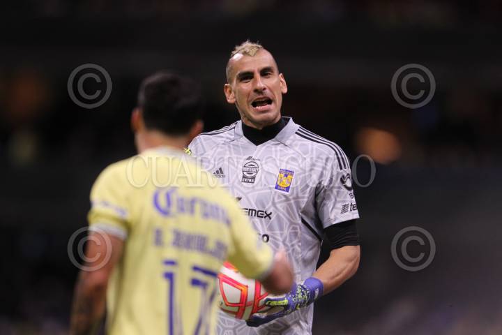 El portero de Tigres Nahuel Guzmán durante el partido de fútbol América vs Tigres correspondiente a la jornada 12 del Torneo Apertura 2022 de Liga BBVA MX, en el estadio Azteca.