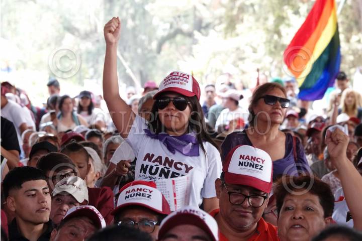 CIUDAD DE MÉXICO, 26MAYO2024.- Una simpatizante muestra su apoyo a Nancy Nuñez, candidata a la alcaldía de Azcapotzalco, durante el cierre de campaña en la explanada de esta demarcación. FOTO: GRACIELA LÓPEZ /CUARTOSCURO.COM