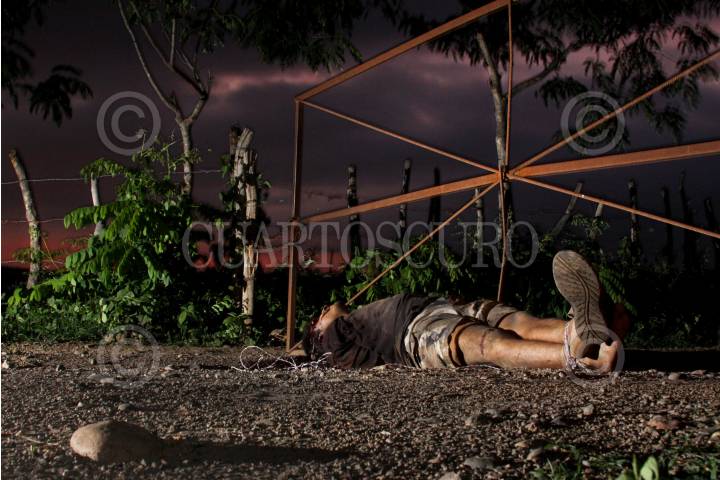 CULIACAN, SINALOA, 03AGOSTO2011.- El cuerpo de un hombre ejecutado aun no identificado, fue localizado en un camino de tarreceria que lleva al poblado los naranjos. La victima presentaba señales de tortura ademas que estaba atado de pies y manos, en el lugar se encontrarion varios casquillos como evidencia; ministerio publico dio fe y dio la orden para llevar el cuerpo al servicio medico forense para realizar las investigaciones correspondientes. FOTO: RASHIDE FRIAS/CUARTOSCURO.COM