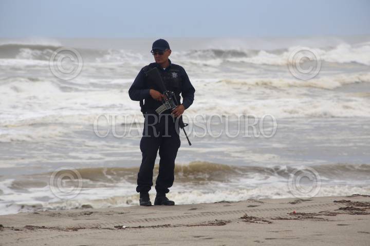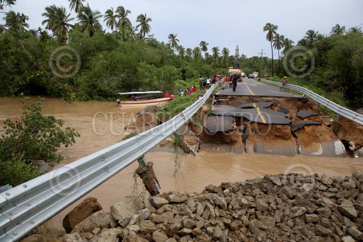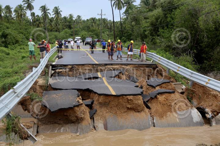 ACAPULCO, GUERRERO, 30SEPTIEMBRE2019.- El Consejo de Protección Civil del estado de Guerrero evaluaron este día los daños ocasionados tras el paso de la tormenta Narda, informaron: 796 viviendas inundadas y 6 mil damnificados, el gobernador Hector Astudillo hizo una solicitud de declaratoria de emergencia para 28 municipios de Guerrero, mientras que el poblado de Barra Vieja municipio de Acapulco, un tramo de la carretera Barra Vieja – Lomas de Chapultepec colapso, y resultaron destruidas enramadas de esa comunidad que se encuentra ubicada a orillas de la laguna de Tres Palos, policías y marinos resguardaron el lugar mientras se realizan trabajos de reparación. FOTO: CARLOS ALBERTO CARBAJAL /CUARTOSCURO.COM
