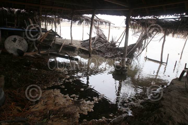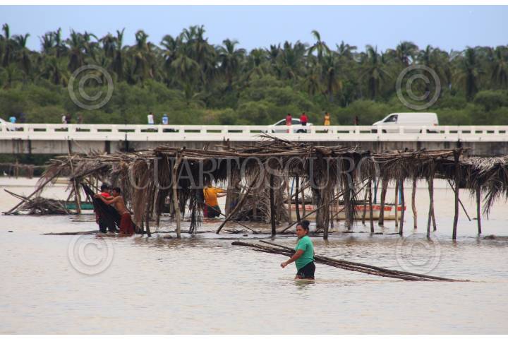 ACAPULCO, GUERRERO, 30SEPTIEMBRE2019.- El Consejo de Protección Civil del estado de Guerrero evaluaron este día los daños ocasionados tras el paso de la tormenta Narda, informaron: 796 viviendas inundadas y 6 mil damnificados, el gobernador Hector Astudillo hizo una solicitud de declaratoria de emergencia para 28 municipios de Guerrero, mientras que el poblado de Barra Vieja municipio de Acapulco, un tramo de la carretera Barra Vieja – Lomas de Chapultepec colapso, y resultaron destruidas enramadas de esa comunidad que se encuentra ubicada a orillas de la laguna de Tres Palos, policias y marinos resguardaron el lugar mientras se realizan trabajos de reparacion. FOTO: CARLOS ALBERTO CARBAJAL /CUARTOSCURO.COM