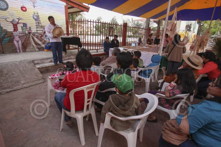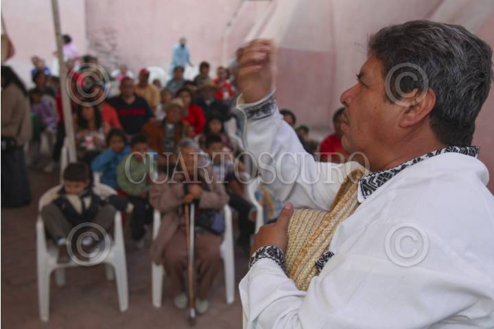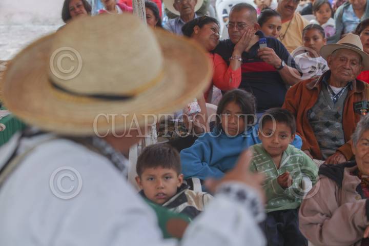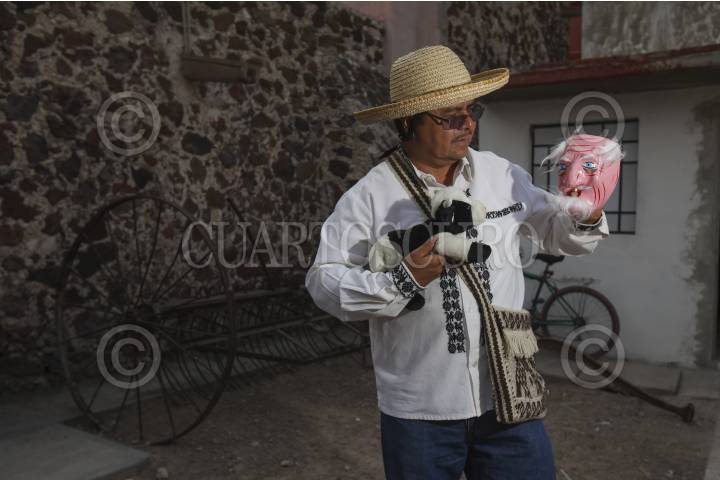 FRANCISCO I. MADERO, HIDALGO 14MAYO2013.- El maestro Mario Ángeles Herrera, egresado de la generación de 1978 de la desaparecida Escuela Normal Rural del Mexe, se ha dedicado profesionalmente desde hace 25 años a realizar Cuenta Cuentos en lengua Ñañu también conocida como Otomí, con la finalidad de acercar la cultura y fortalecer la tradición oral y las leyendas regionales del Valle del Mezquital, que es donde realiza sus presentaciones, principalmente en comunidades de esta lengua. Para "hacerle al cuento" (como el lo describe) en sus presentaciones solo ocupa las palabras y algunos artículos teatrales, dependiendo el público, pues lo mismo asisten niños que adultos, campesinos y maestros. FOTO: JUAN PABLO ZAMORA /CUARTOSCURO.COM