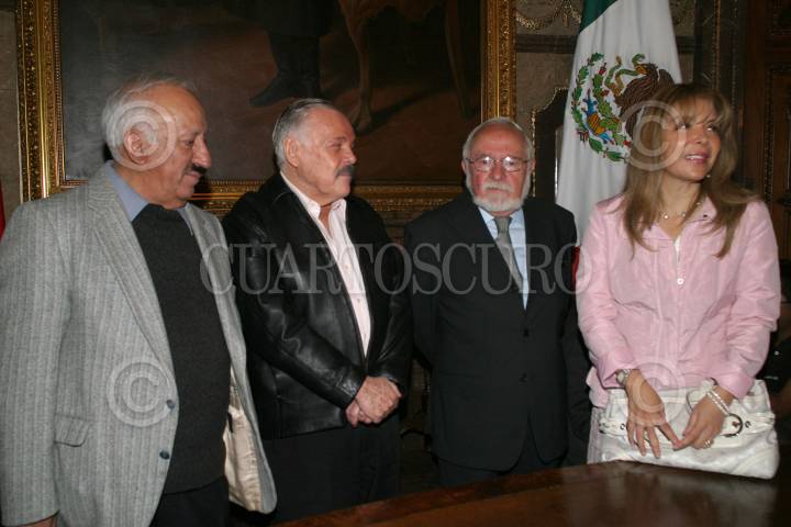 MEXICO, D.F. 19FEBRERO2007.- Froilan López Narvaez, Jose Luis Cuevas, Jaime Ortiz Lajous y Beatriz del Carmen Cuevas en el salón de cabildo, donde se contituyó el Consejo de la Crónica. FOTO: NELLY SALAS/CUARTOSCURO.COM