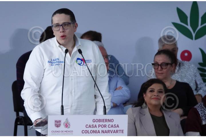 CIUDAD DE MÉXICO, 03JULIO2025.- Luis Mendoza, alcalde de Benito Juárez, en conferencia de prensa junto con Clara Brugada, jefa de gobierno capitalino por la campaña Casa por Casa en las inmediaciones de la Colonia Narvarte. FOTO: GALO CAÑAS/CUARTOSCURO.COM