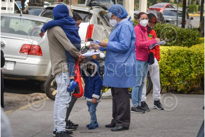 Personal de un laboratorio privado de la Narvarte Oriente registra a las personas que se tomarán una prueba covid-19 desde su automóvil.
