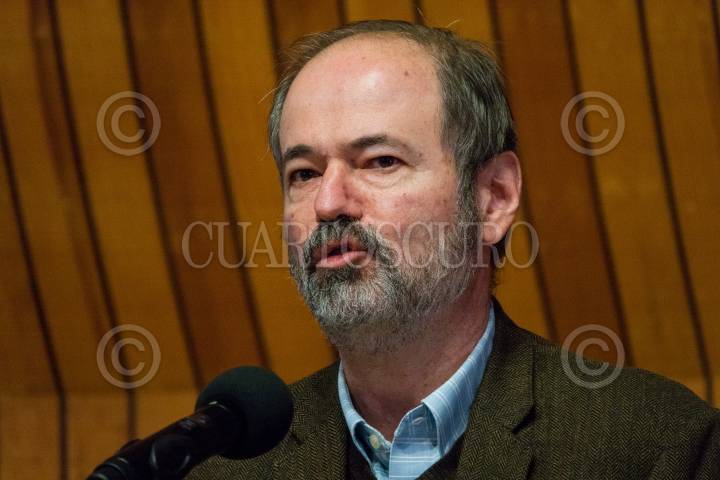 Juan Villoro durante su participación en la Mesa Interactiva La creatividad durante la pandemia”realizada en el Colegio Nacional.