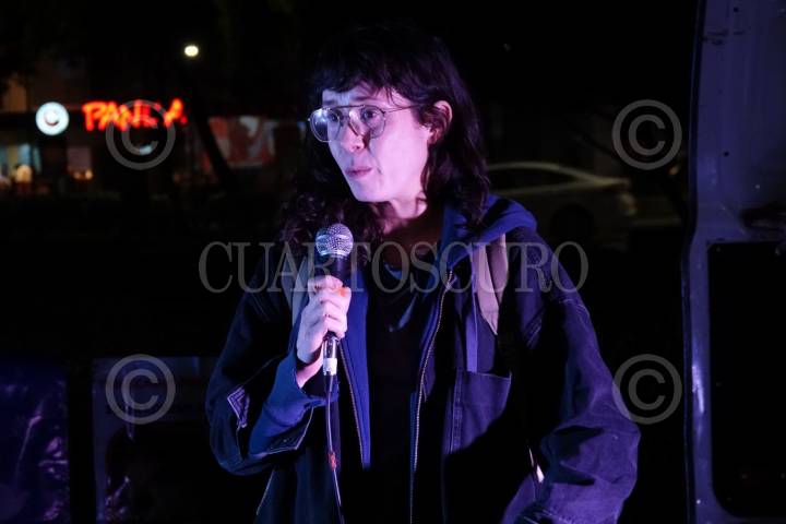 Natalia Beristain, directora del documental Ruido, durante la proyección en la Glorieta de las Mujeres que Luchan