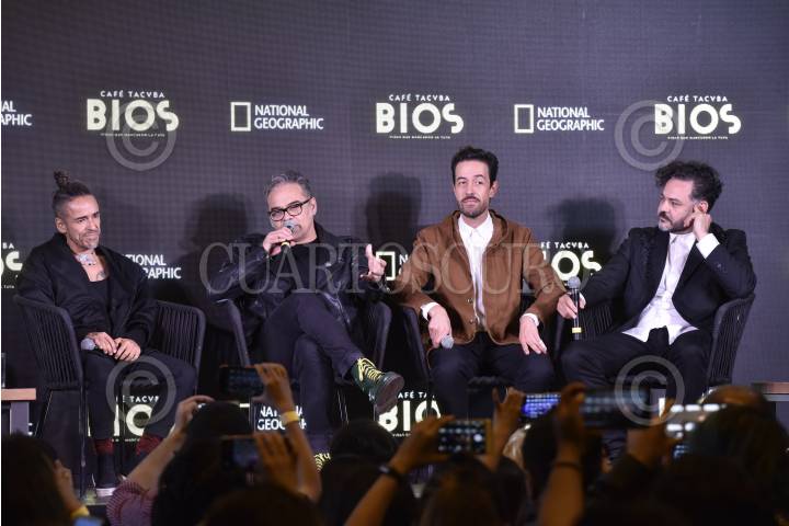 CIUDAD DE MÉXICO, 29OCTUBRE2019.- Rubén Albarrán; Enrique Rangel Joselo Rangel y Emmanuel del Real, integrantes de la banda mexicana “Café Tacvba”, posaron para los medios de comunicación, en la presentación de su documental “BIOS”, que será transmitido por el canal de televisión de paga “National Geographic”. FOTO: MARIO JASSO /CUARTOSCURO.COM