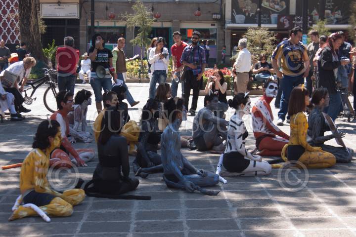 MÉXICO D.F., 31JULIO2011.- A las afueras del Palacio de Bellas Artes, integrantes de Anima Naturalis, se manifestaron con fotografías de animales pintados como si fueran payasos para exigir el respeto a los animales y en contra de uso de los animales en los circos. FOTO: GUILLERMO PEREA/CUARTOSCURO.COM