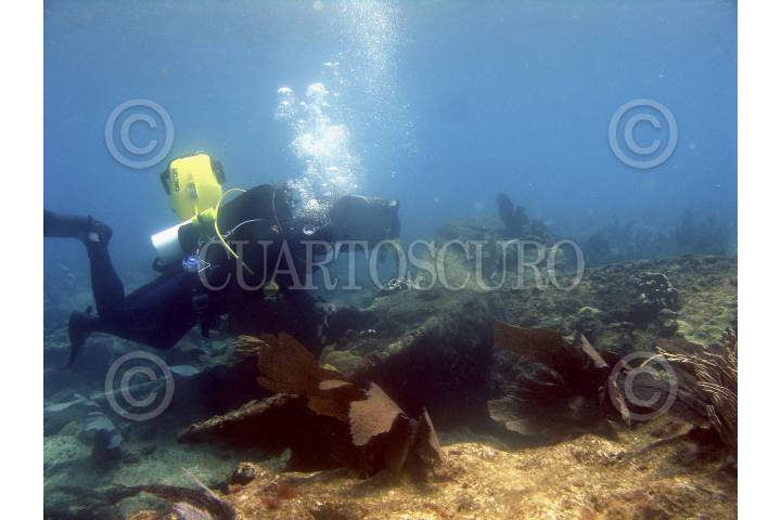 CANCUN, QUINTANA ROO, 23JULIO2013.- Desde un ancla aislada, hasta amplias áreas donde se dispersan vestigios de naves y sus cargamentos, el INAH ha detectado 69 sitios donde yacen testimonios de los siglos XVI al XX. FOTO: OCTAVIO DEL RIO /INAH /CUARTOSCURO.COM
