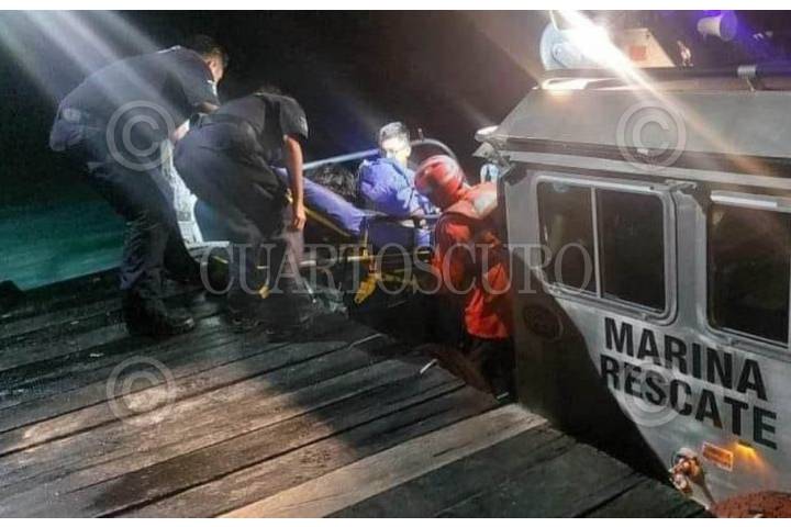 CANCÚN, QUINTANA ROO, 29ENERO2024.- Una embarcación que partió de Isla Mujeres rumbo a Cancún naufrago, dejando un Aldo de la menos cuatro muertos, entre ellos un menor de edad, elementos de la Marina y Protección Civil acudieron al rescate, poniendo a varios turistas a salvo, sin embargo, se desconoce el paradero de otros. El capitán del barco fue detenido para deslindar responsabilidades. FOTO: CUARTOSCURO.COM