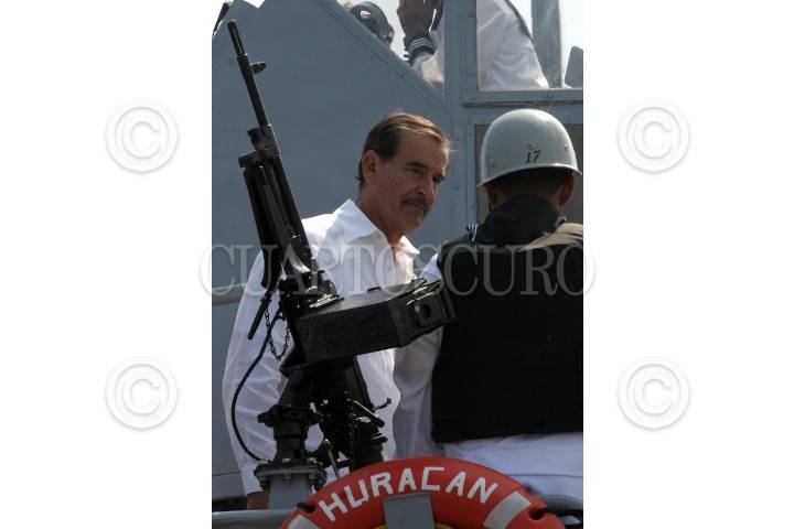 Boca del Río, Veracruz, 17FEBRERO2005.- Vicente Fox Quesada, presidente de la República, encabezo la ceremonia de abanderamiento de las patrulla Oceanica conformada por las naves Patrulla Oceanica California y la Patrulla Misilera Huracan de la Fuerza Naval de México. FOTO: Moisés Pablo/CUARTOSCURO.COM