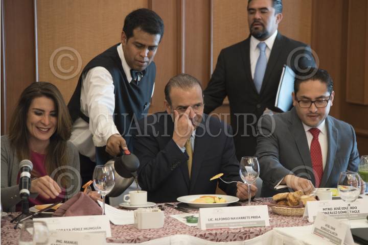 CIUDAD DE MÉXICO, 09MARZO2017.- Alfonso Navarrete Prida, Secretario de Trabajo y Previsión Social, y Soraya Pérez Munguía, Presidenta de la Federación de Colegios de Economistas, y el maestro José Eduardo González Gómez, encabezaron una reunión de trabajo con el gremio de economistas en el Hotel Emporio. FOTO: TERCERO DÍAZ /CUARTOSCURO.COM