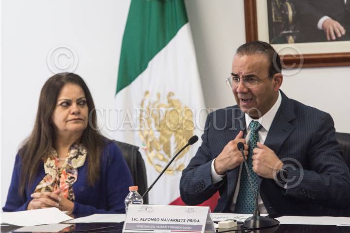 CIUDAD DE MÉXICO, 14JULIO2017.- Alfonso Navarrete Prida, Secretrario de Trabajo y Previsión Social, encabezó una conferencia de prensa donde comentaron que en el sexenio del presidente Enrique Peña Nieto subió la tasa de empleabilidad de manera histórica. FOTO: TERCERO DÍAZ /CUARTOSCURO.COM