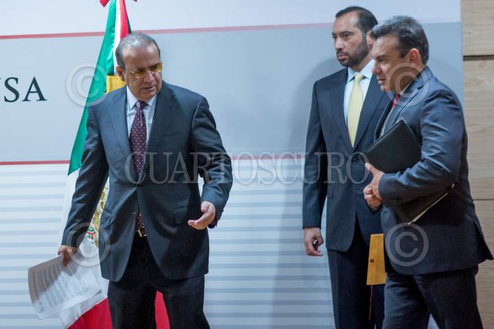 CIUDAD DE MÉXICO, 13MAYO2018.- Alfonso Navarrete Prida, secretario de Gobernación, ofreció una conferencia donde mencionó que el gobierno del presidente Enrique Peña Nieto se mantendrá imparcial ante el proceso electoral del país. FOTO: ARMANDO MONROY /CUARTOSCURO.COM
