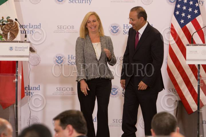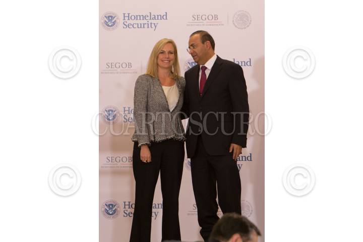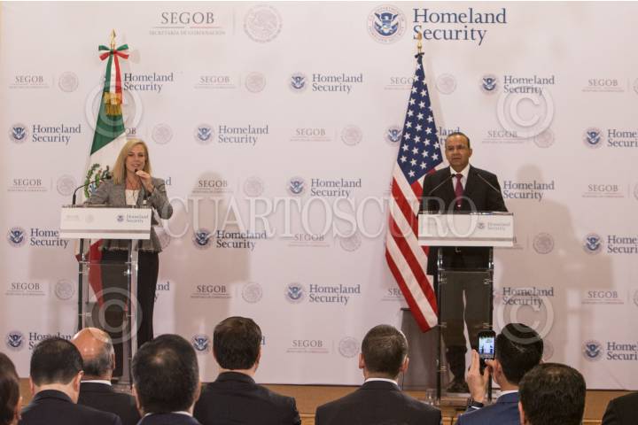 CIUDAD DE MÉXICO, 26MARZO2018.- Alfonso Navarrete Prida, secretario de Gobernación, y Kirstjen Nielsen , secretaria de Seguridad Nacional Interior de Estados Unidos, durante conferencia de prensa donde dieron a conocer el compromiso por parte de ambos gobiernos en el tema de migración, crimen organizado, y desastres naturalez, entre otros temas. FOTO: TERCERO DÍAZ /CUARTOSCURO.COM