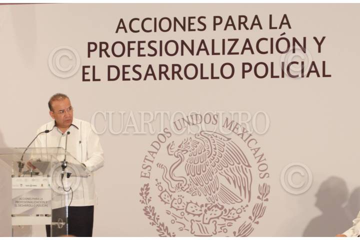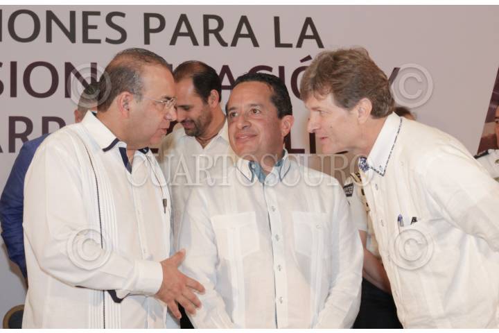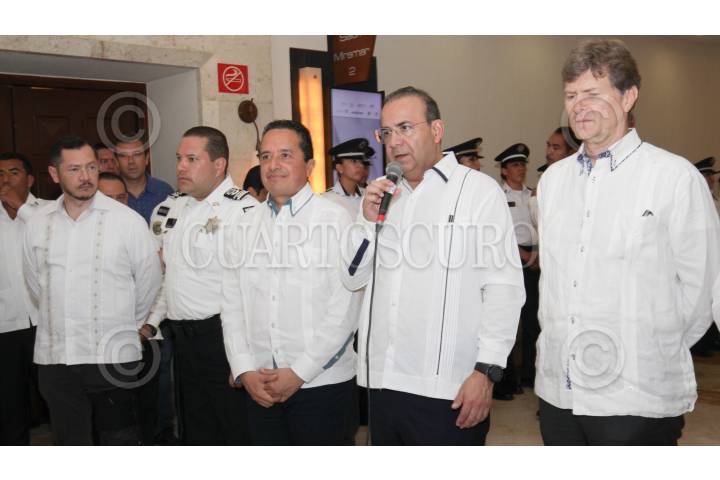 CANCÚN, QUINTANA ROO, 27MARZO2018.- Alfonso Navarrete Prida, secretario de Gobernación, asistió a la presentación de las Acciones para la Profesionalización y el Desarrollo Policial. En el acto estuvo acompañado por Carlos Joaquín, gobernador del estado, y Enrique de la Madrid, secretario de Turísmo. FOTO: ELIZABETH RUIZ /CUARTOSCURO.COM