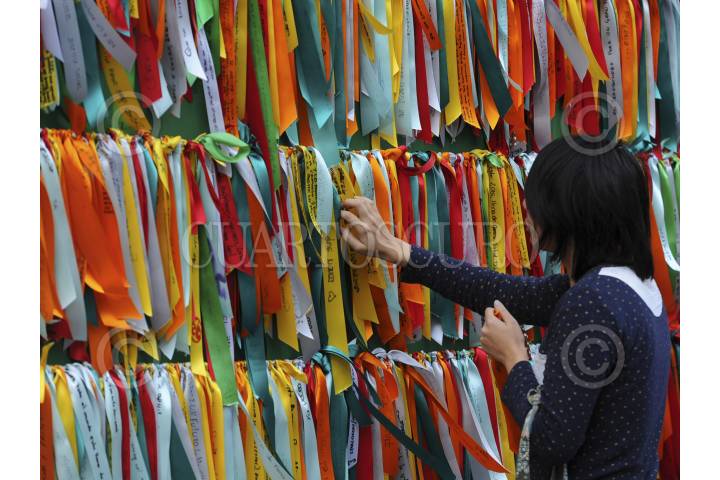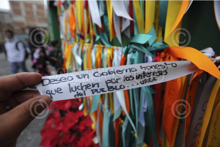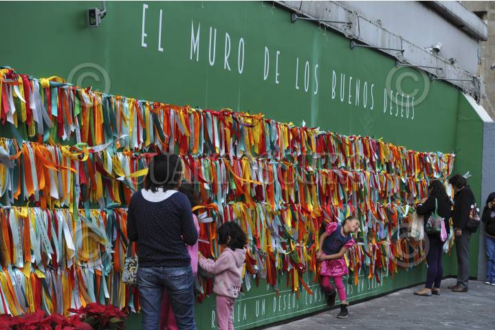 MÉXICO, D.F., 26DICIEMBRE2014.- Un muro fue acondicionado en la Torre Latinoamericana para mostrar los deseos de las personas para el próximo año. FOTO: ARMANDO MONROY /CUARTOSCURO.COM