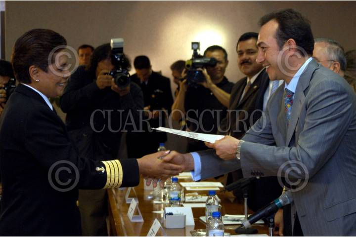 MÈXICO D.F. 15 MARZO.2006.- Barbara Elivira García, fue ratificada como capitán de navío en el senado de la república por el senador, Antonio Soto Sánchez, presidente de la comisión de marina del Senado de la República. FOTO: Guillermo Perea / CUARTOSCURO.COM
