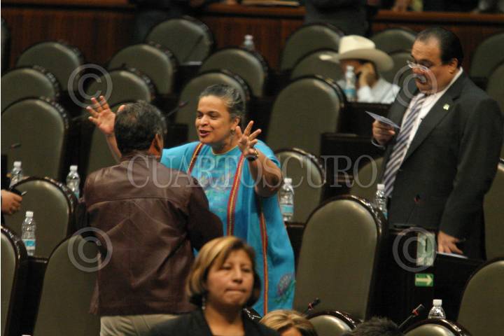 MÉXICO D.F., 27ABRIL2010.- Beatriz Paredes Rangel, dialoga con Julian Nazar, ambos Diputados del PRI, durante la sesión en la Cámara de Diputados. FOTO: GUILLERMO PEREA/CUARTOSCURO.COM