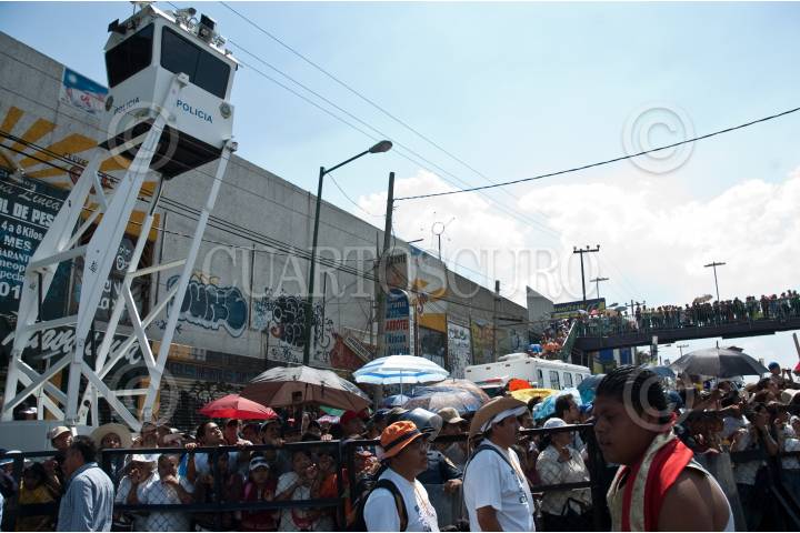 MÉXICO, D.F., 10ABRIL2009.- Torretas de vigilancia instaladas por la Secretaria de Seguridad Pública del D.F. sobre la avenida Ermita Iztapalapa vigilan desde las alturas la tradicional representación del viacrucis de La Pasión en Iztapalapa. FOTO: RODOLFO ANGULO/CUARTOSCURO.COM
