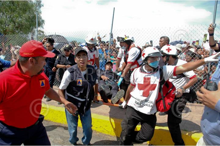 MÉXICO, D.F., 10ABRIL2009.- Un policia es atendido por elementos de la Cruz Roja despues de una riña en el cerro de la Estrella después de llegar en la tradicional representación del viacrucis de La Pasión en Iztapalapa. FOTO: RODOLFO ANGULO/CUARTOSCURO.COM
