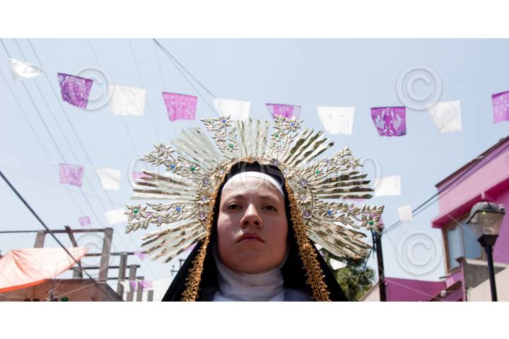 MÉXICO, D.F., 10ABRIL2009.- Maria Magdalena recorre las calles de iztapalapa durante la tradicional representación del viacrucis de La Pasión en Iztapalapa. FOTO: RICARDO CASTELAN/CUARTOSCURO.COM
