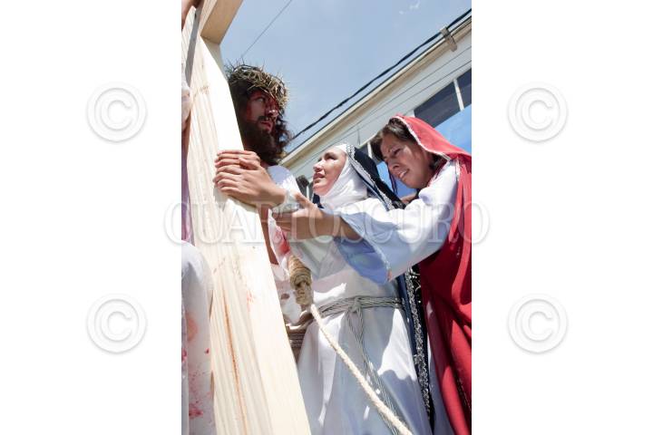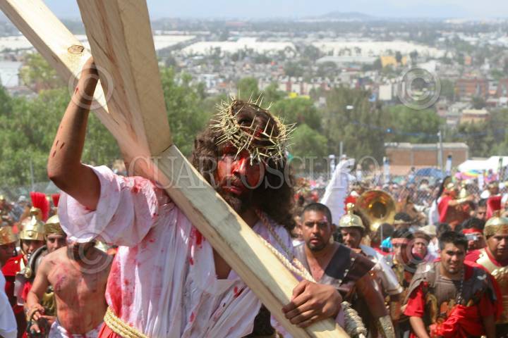 ÁNIMAS TRUJANO, OAXACA, 25MARZO2016.- Este medio día se llevó a cabo en los distintas localidades del estado de Oaxaca la representación de la "Pasión y muerte de Jesucristo" de acuerdo con la religión católica. Uno de estos sitios es el municipio de Ánimas Trujano, conurbado a la capital del estado en el que un grupo de jóvenes realizó la representación en la que Jesús de Nazareth es condenado a muerte y crucificado en el monte el Calvario. FOTO: ARTURO PÉREZ ALFONSO /CUARTOSCURO.COM