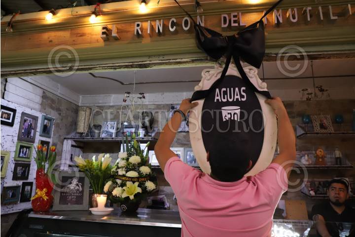 CIUDAD DE MÉXICO, 17FEBRERO2025.- El Rincón del Inútil, negocio perteneciente a Paquita la del Barrio y de su manager, Francisco Torres, colocaron un moño negro, además de una fotografía de la cantante mexicana debido a su fallecimiento el día de hoy en su natal Veracruz. FOTO: DANIEL AUGUSTO/ CUARTOSCURO.COM