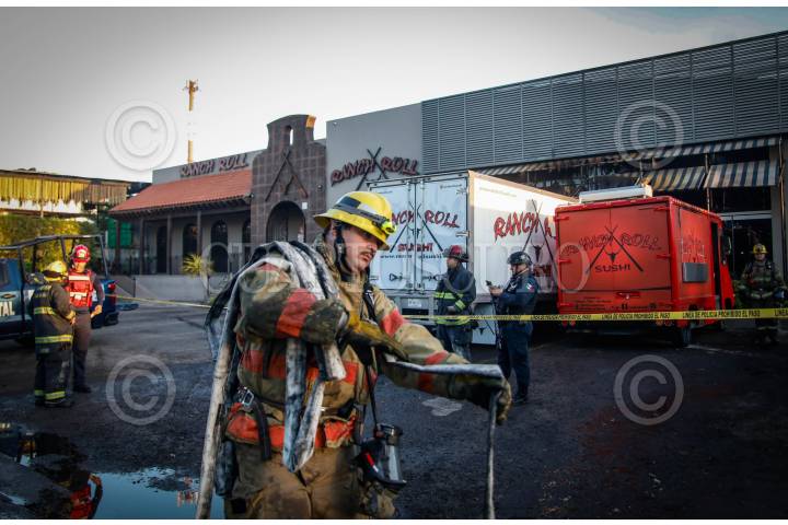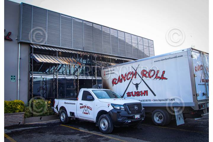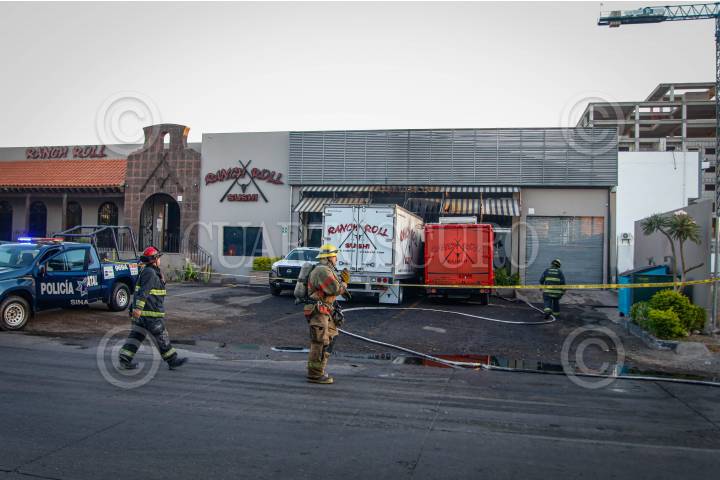 CULIACÁN, SINALOA, 28NOVIEMBRE2024.- En la mañana de este jueves, sujetos armados atacaron dos sucursales del Sushi Rach Roll en Culiacán, causando solo daños materiales. En la sucursal de La Isla Musala, incendiaron dos vehículos estacionados afuera, mientras que en la de Tres Ríos quemaron parte de la fachada y sujetos desconocidos y realizaron disparos. Los bomberos que acudieron a sofocar el incendio en La Isla Musala fueron ahuyentados a balazos por los agresores. FOTO: JOSÉ BETANZOS/CUARTOSCURO.COM
