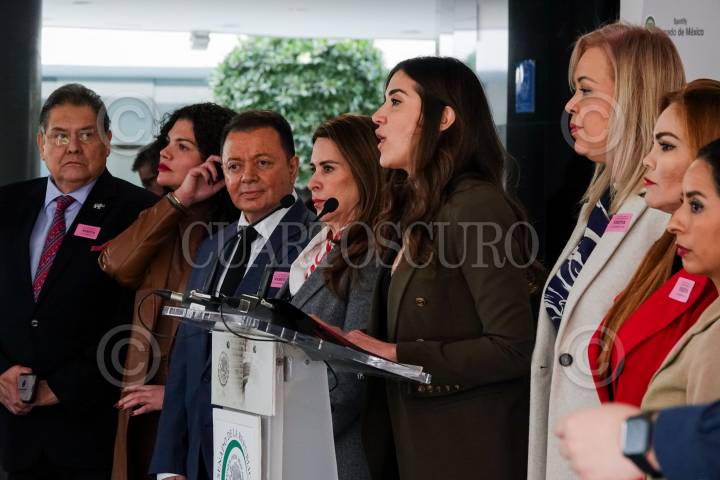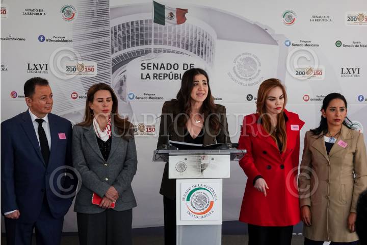 CIUDAD DE MÉXICO, 03DICIEMBRE2024.- Paloma Sánchez y Carolina Viggiano, senadoras priistas encabezaron la conferencia de prensa con representantes del sector empresarial de Sinaloa en el Senado de la República, para hablar sobre la situación por la que atraviesa Sinaloa y solicitar apoyo por parte del gobierno federal para la recuperación debido al aumento en la ola de violencia. FOTO: GALO CAÑAS/CUARTOSCURO.COM