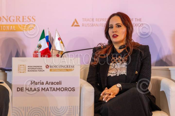 CIUDAD DE MÉXICO, 03ABRIL2025.- María Araceli De Haas Matamoros, directora general de Relaciones Internacionales de la Secretaría de Economía, durante la inauguración del Roscongress International Business Forum, en el marco de los fortalecimientos de los lazos comerciales entre México y Rusia. FOTO: MOISÉS PABLO/CUARTOSCURO.COM