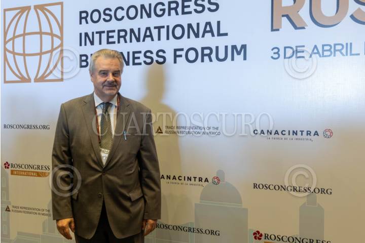 CIUDAD DE MÉXICO, 03ABRIL2025.-Nikoláy V. Sofinskiy, embajador de Rusia en México, durante la inauguración del Roscongress International Business Forum, en el marco de los fortalecimientos de los lazos comerciales entre México y Rusia. FOTO: MOISÉS PABLO/CUARTOSCURO.COM